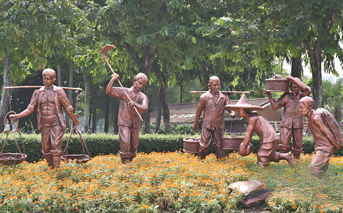 通過多人物組合再現(xiàn)市井畫卷,如《老長沙》系列的補(bǔ)鍋匠與圍觀群眾9,讓游客沉浸式感受城市歷史。