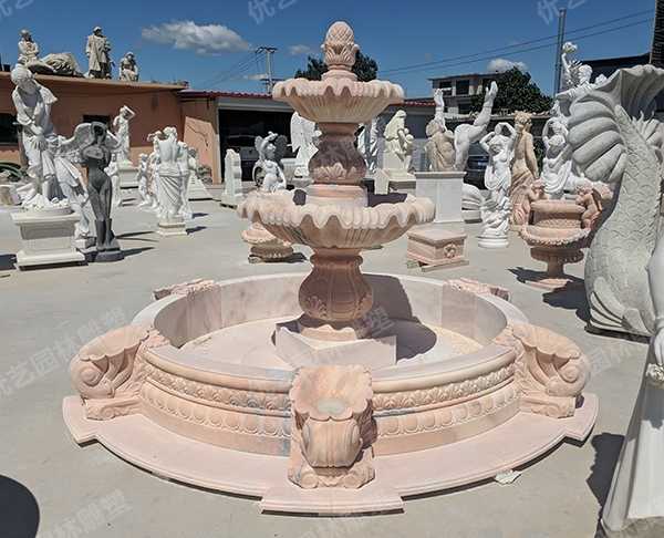雙層晚霞紅景觀石雕噴泉-石雕噴泉-不銹鋼園林景觀雕塑定制廠家-曲陽縣優(yōu)藝園林雕塑有限公司