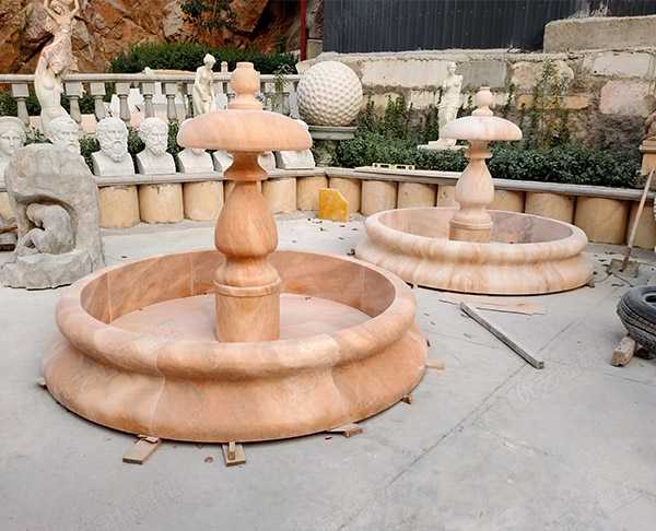 天然晚霞紅大理石雕刻小型石雕噴泉-石雕噴泉-不銹鋼園林景觀雕塑定制廠家-曲陽縣優(yōu)藝園林雕塑有限公司