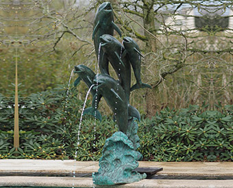 優(yōu)藝園林雕塑有限公司提供設(shè)計新穎,質(zhì)量可靠的銅噴泉雕塑。我們的銅噴泉雕塑是以海洋動物海豚為主題制作的,海豚以靈活的動作追逐嬉戲,組成一組可愛有漂亮的銅海豚噴泉雕像。