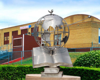 校園不銹鋼雕塑-不銹鋼書本地球儀雕塑